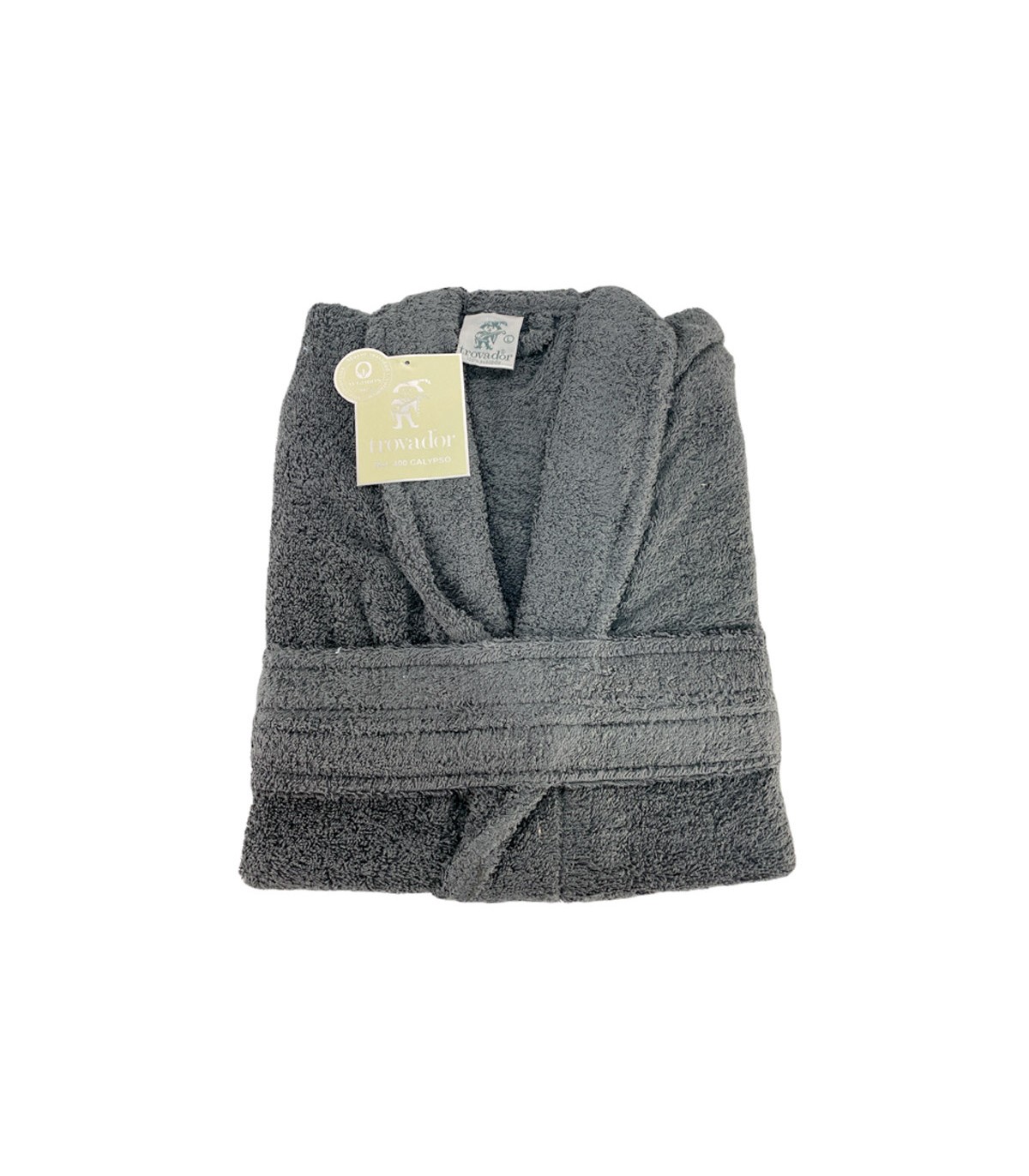 Albornoz Unisex (para caballero y señora), modelo Calypso de la marca TROVADOR. Tiene cuello smoking dos bolsillos y cinturón para ajustar a la cintura. Tejido con un alto poder de absorción y tacto extra suave.