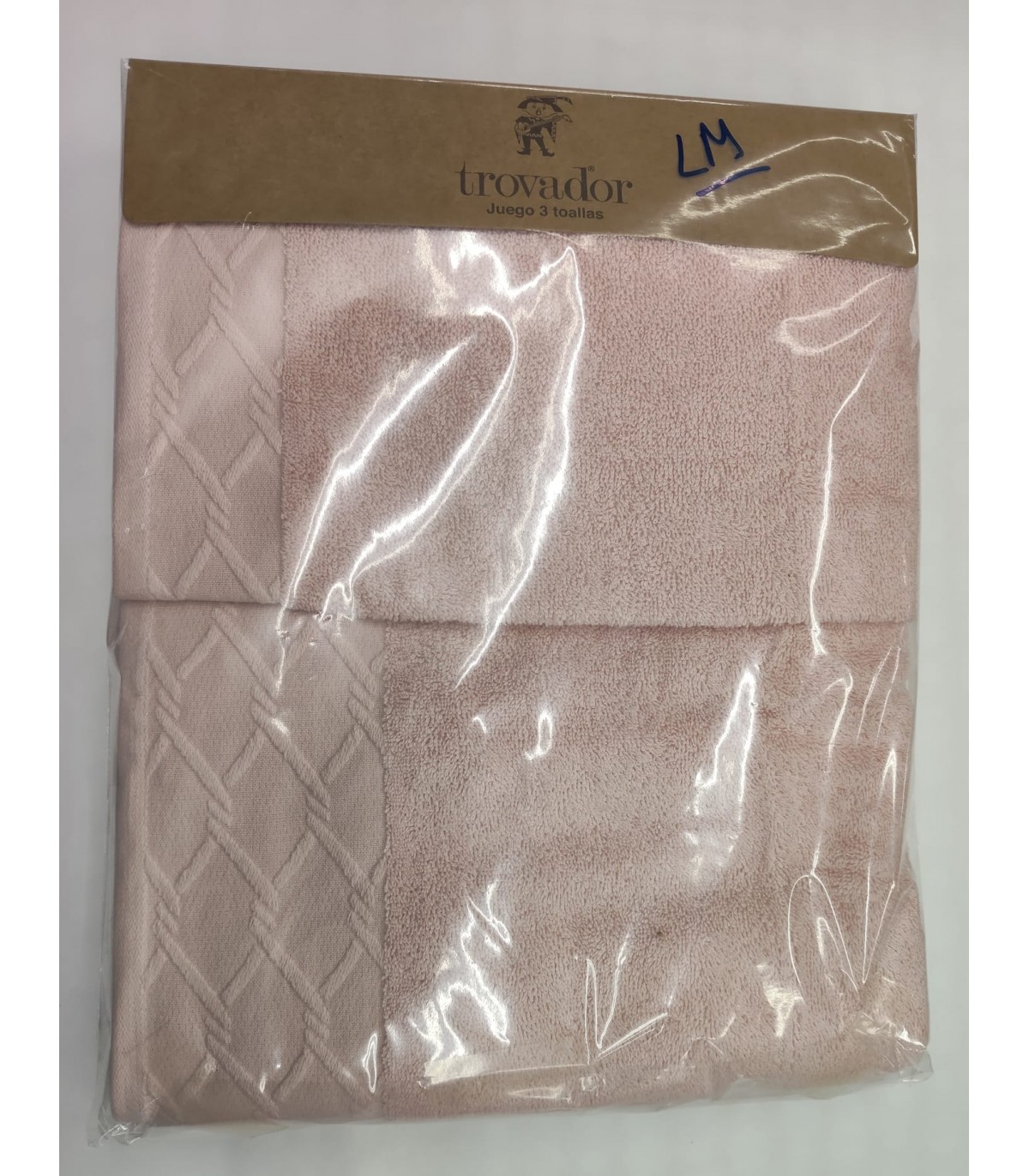 Juego compuesto por toallas: Tocador (30x50 cm), Lavabo (50x100 cm) y Sabana (100x150 cm) y disponibles en varios colores.