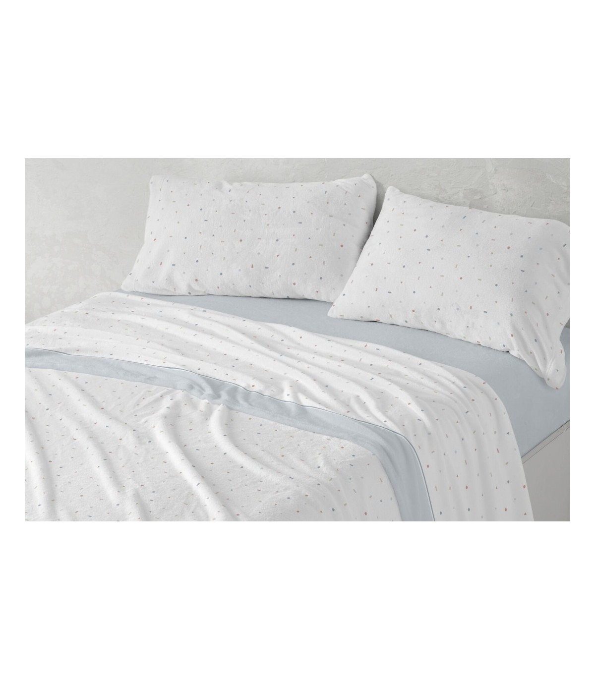 Juego de Sábanas de Coralina diseño 998 de la marca Burrito Blanco. Sábanas de invierno confeccionado con tejido CORALINA, cálido y extremadamente suave y ligero, destacan por su gran calidad, garantizando una gran durabilidad, con un diseño botánico de ramitas, hojas y flores.