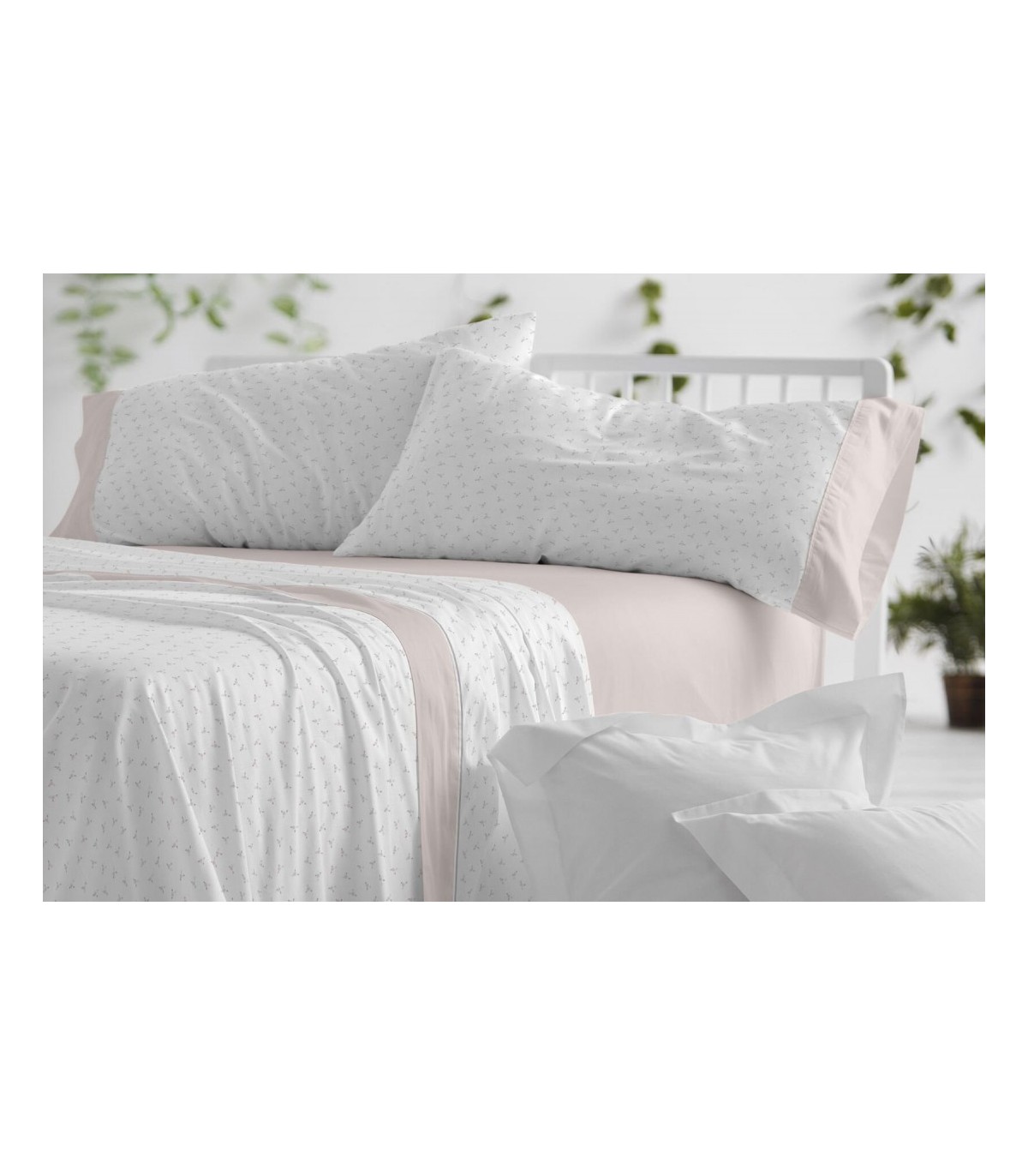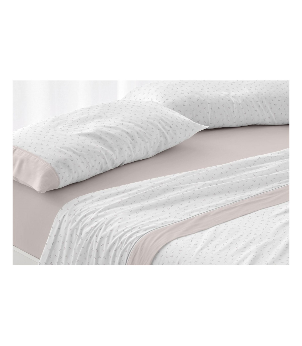 Juego de sábanas de franela de Burrito Blanco modelo 576. Sábanas de franela perfecto para el invierno y entretiempo gracias a sy tacto cashmere, un tejido cálido y suave. Tiene un estampado de flores en diferentes tonos, sobre un fondo blanco, compuesto por tres piezas, bajera ajustable, encimera y almohadón.