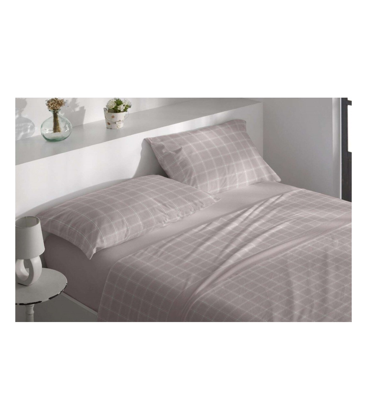 Juego de sábanas de tejido Velvelina modelo 08 de la marca Burrito Blanco. Las sábanas de Velvelina, destacan por una suavidad derivada del perchado a doble cara, agradable y textura aterciopelada, con el pelo más corito que las sábanas de coralina. Juego con estampado geométrico de cuadros.
