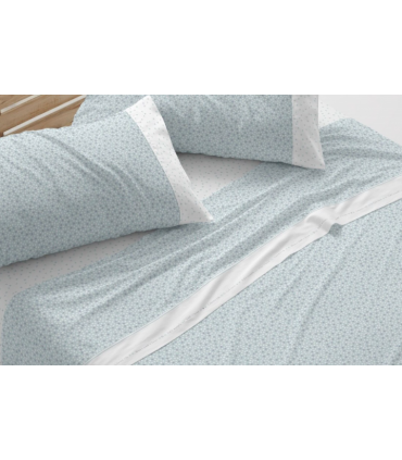 Juego de Sábanas diseño floral, modelo 183 de la marca Burrito Blanco. Este juego de sábanas está pensado para quienes buscan vestir la cama con un diseño delicado y fácil de integrar. Las pequeñas florecitas naif, distribuidas de forma uniforme, recuerdan a la repetición amable de la estampación artesanal, pero con una lectura actual y luminosa, muy afín al escandinavismo.