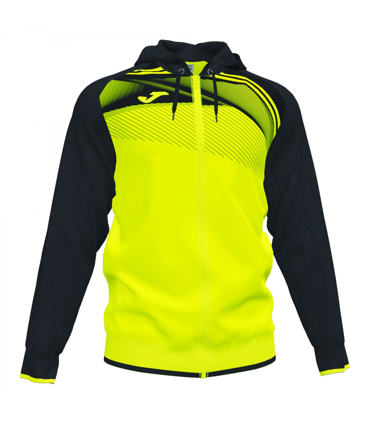 Sudadera modelo SUPERNOVA II, de la marca JOMA. Esta chaqueta tiene cremallera y manga raglán, con bajos y puños en canalé. Incorpora sublimación frontal, con cordón y logo bordado.