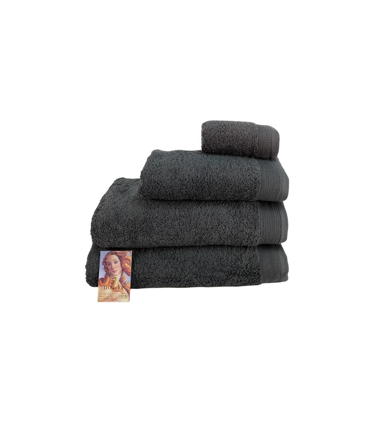Toallas modelo VENUS de la marca Trovador. Destacan por ser unas toallas súper absorbentes, muy suaves al tacto y duraderas, gracias a su composición de 100% algodón americano.